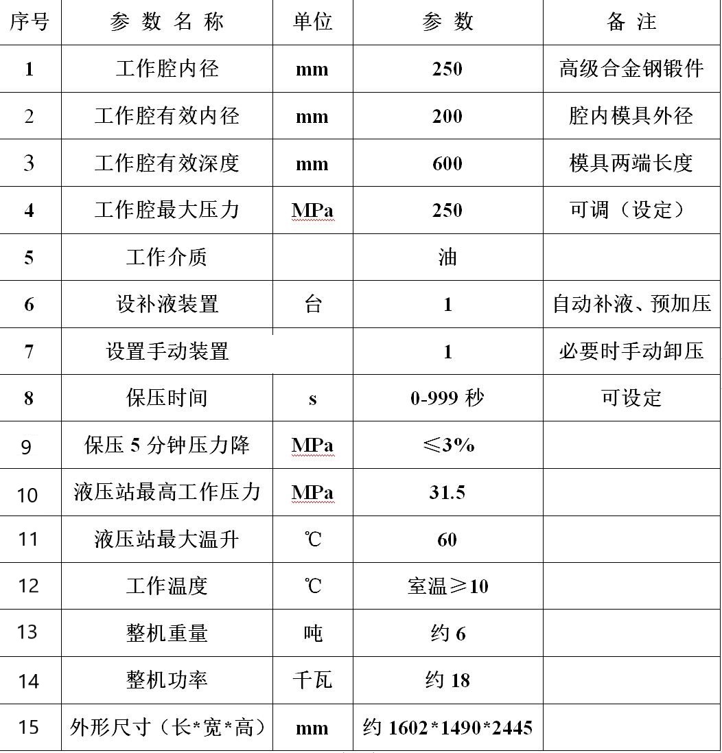 GDJ200/600-250-B干袋等靜壓機(jī)技術(shù)參數(shù)表